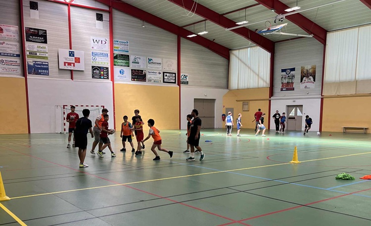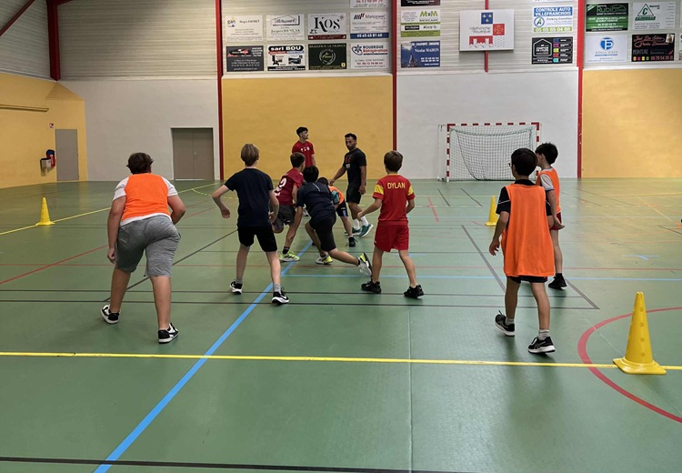 Plusieurs joueurs des Loups de Villefranche XIII sont venus animer des ateliers avec les ballons et échanger avec les élèves de l'association sportive.